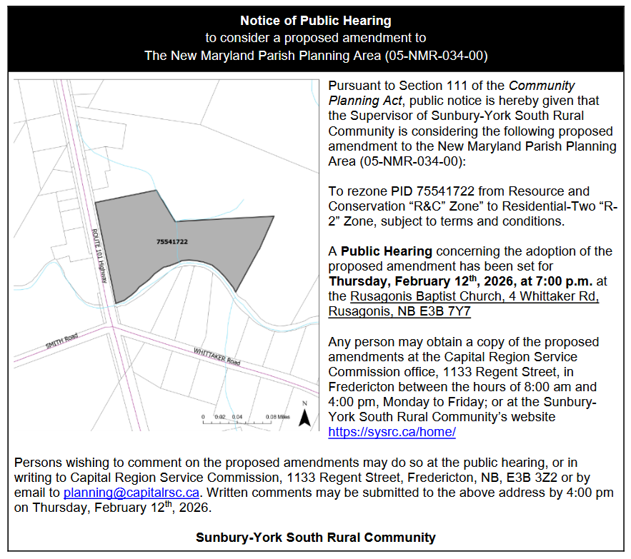Rd, Rusagonis, NB E3B 7Y7. on Thursday, February 12th, 2025, at 7:00 p.m.